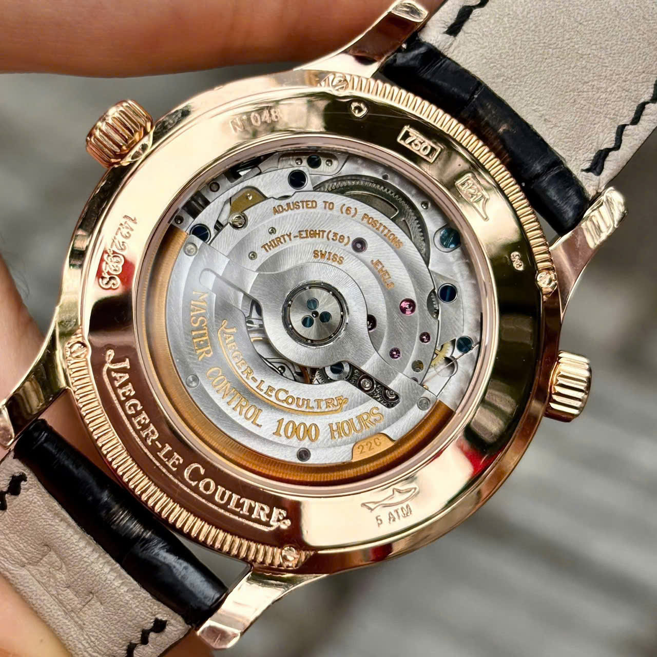 Chất liệu: Vỏ được chế tác từ vàng hồng 18K (Rose Gold) nguyên khối. Sắc vàng của JLC giai đoạn này rất sang trọng, có độ bóng sâu và bền bỉ.