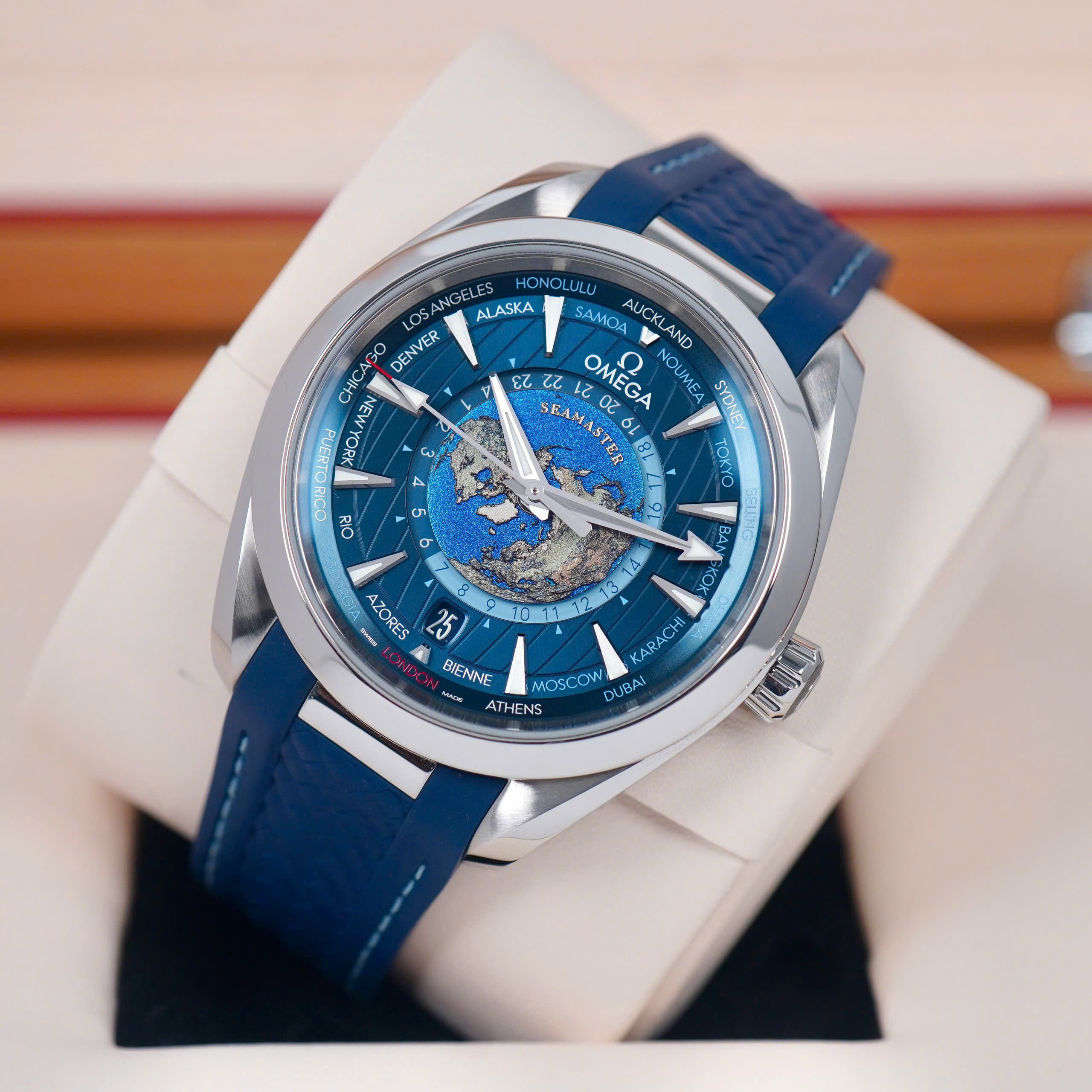 - Tên đầy đủ: OMEGA Seamaster Aqua Terra 150M Co-Axial Master Chronometer GMT Worldtimer 43 mm