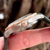 Vành Bezel Titanium: Đây là điểm nhấn khác biệt nhất. Vành xoay một chiều được làm từ Titanium Grade 5. Các chữ số và thang đo được chế tác bằng phương pháp dập nổi (laser-ablated) tạo độ nhám, tương phản rõ rệt với nền kim loại. Thiết kế này vừa giúp giảm trọng lượng vừa mang lại vẻ ngoài “lì” và cứng cáp.