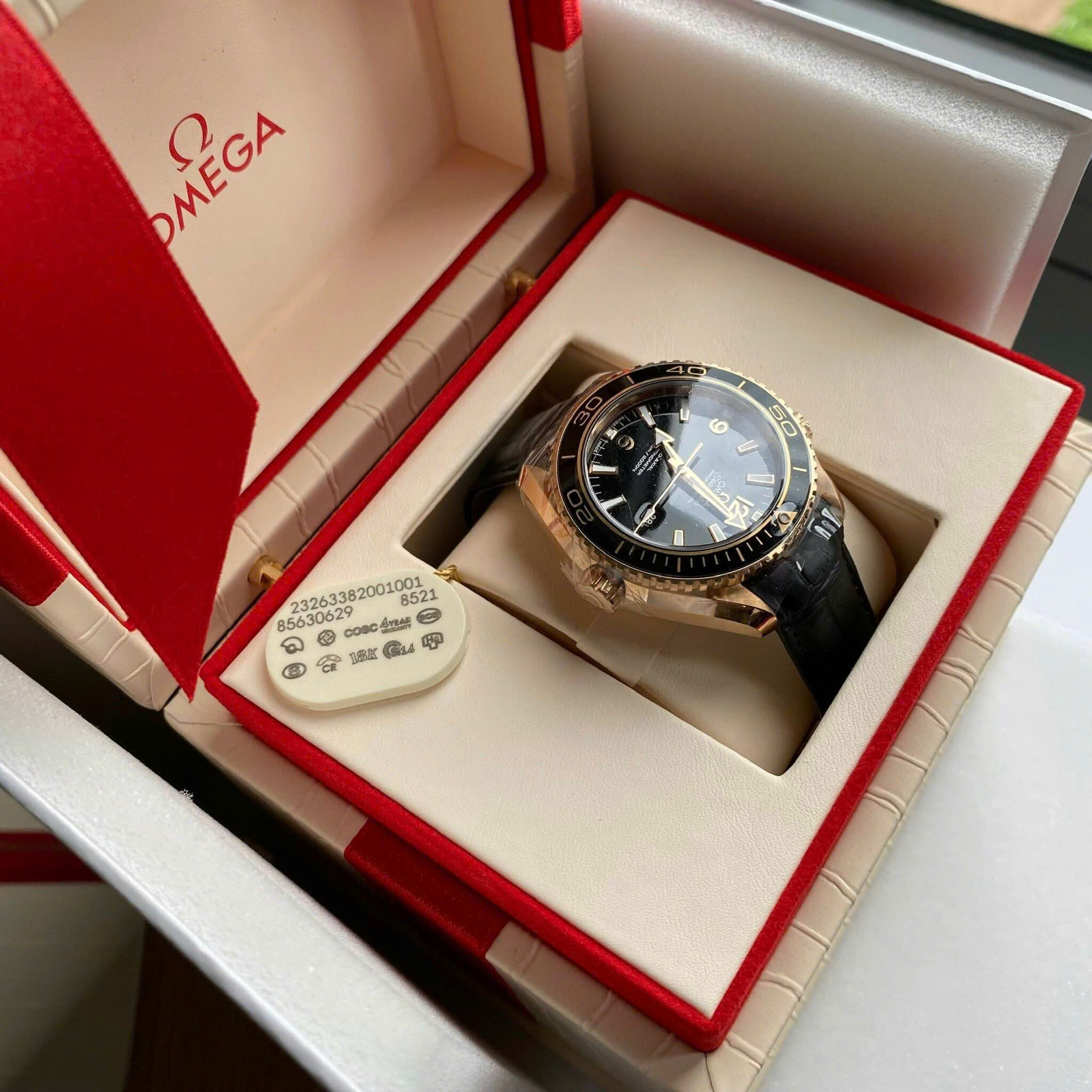 Omega Seamaster Planet Ocean 600M (mã 232.63.38.20.01.001) là một trong những chiếc đồng hồ lặn xa xỉ nhất của Omega. Nó phá vỡ định kiến về đồng hồ lặn là phải “hầm hố” bằng cách sử dụng vật liệu vàng đúc cao cấp và kích thước cực kỳ tinh tế.