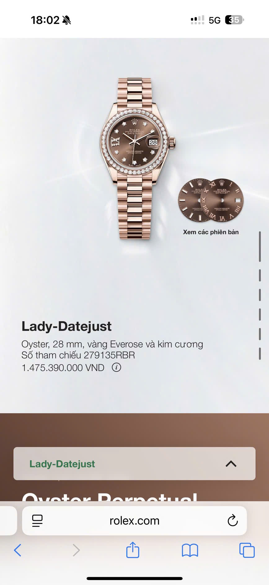 Rolex Lady-Datejust mã hiệu 279135RBR là một trong những tuyệt phẩm dành cho phái đẹp, thuộc phân khúc cao cấp nhất của dòng Lady-Datejust nhờ sự kết hợp giữa chất liệu vàng khối và kim cương.