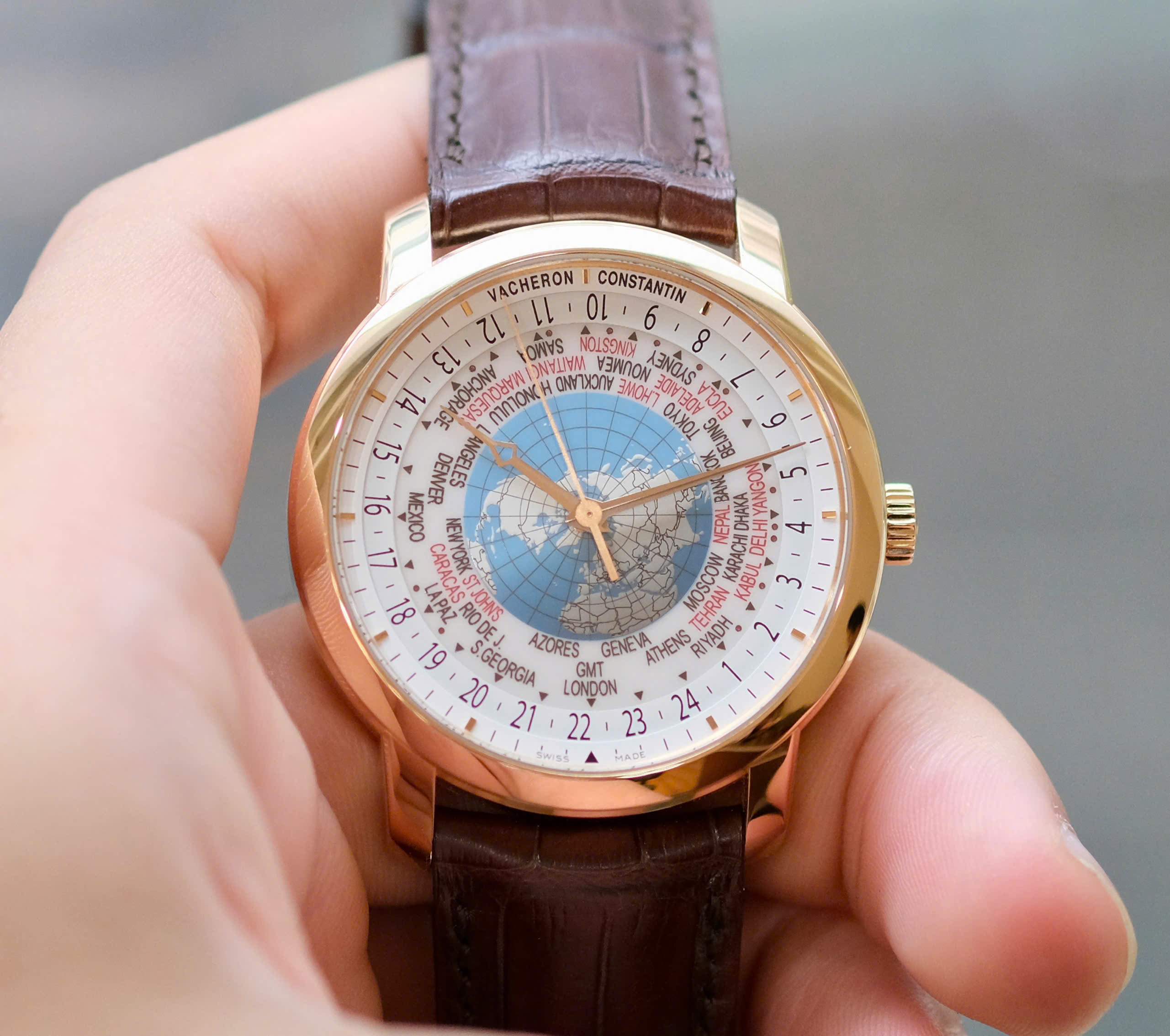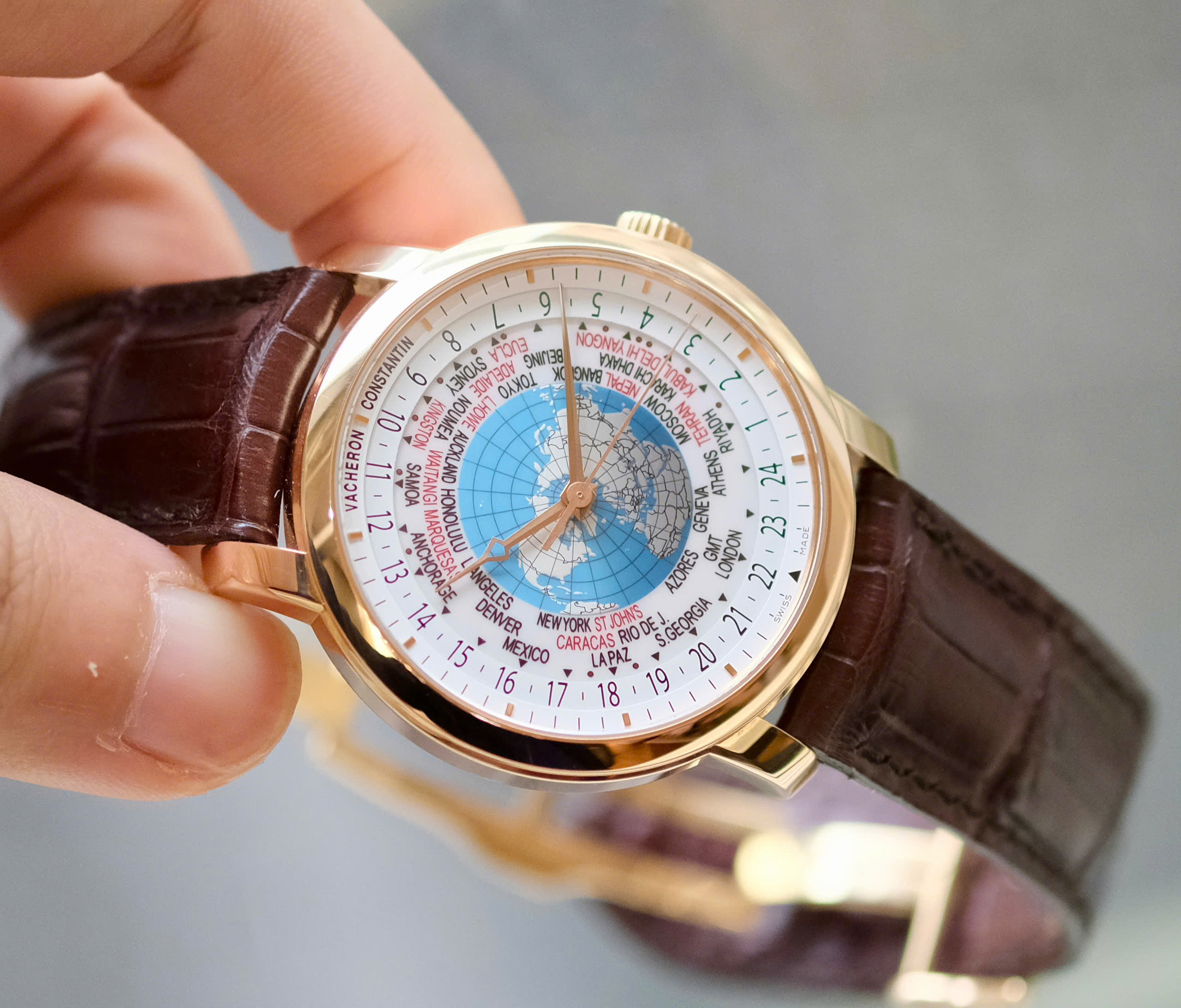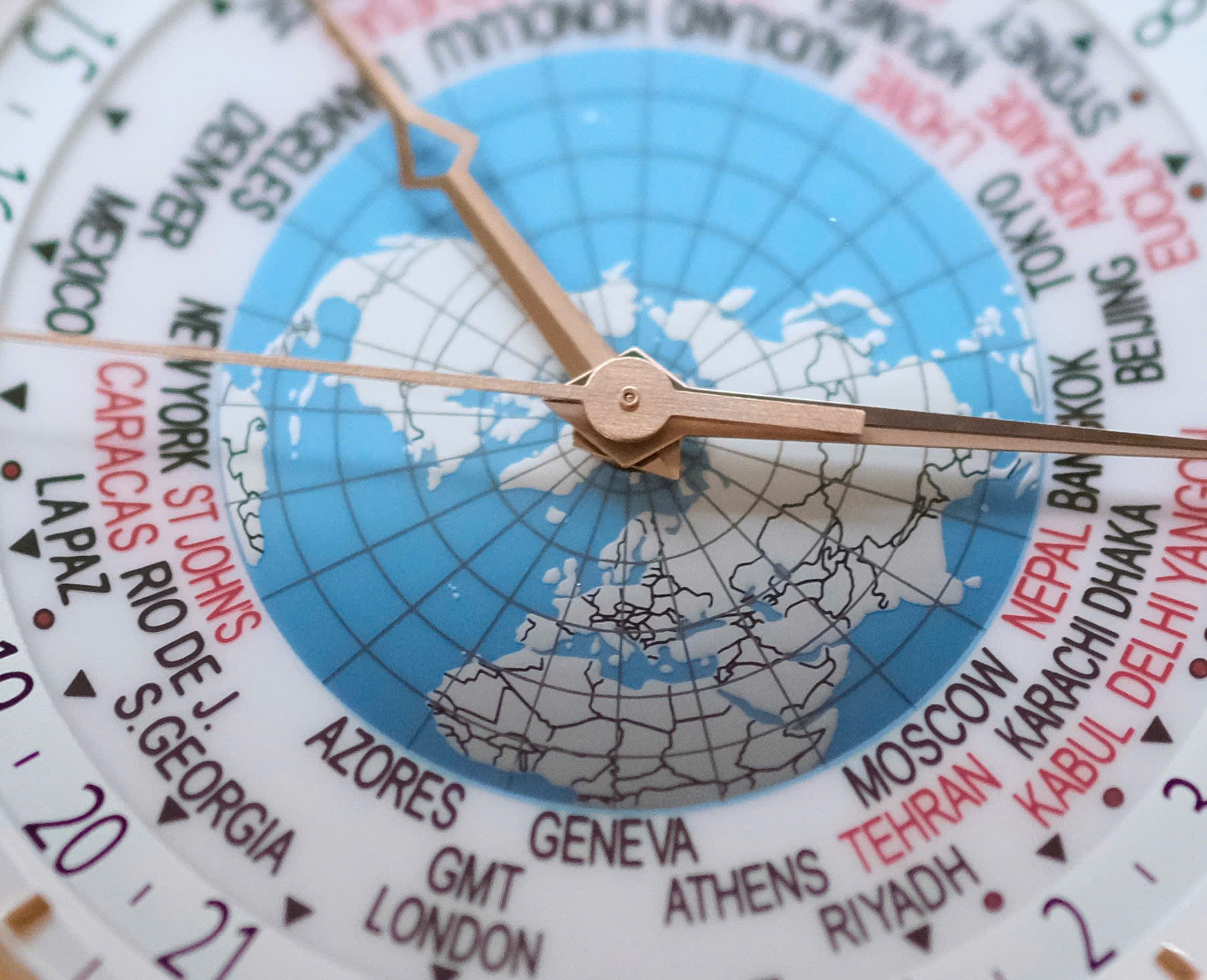 Múi giờ lẻ: Khác với đa số đồng hồ World Time thông thường chỉ hiển thị 24 múi giờ chẵn, Vacheron Constantin có thể hiển thị cả những múi giờ lệch 15 hoặc 30 phút (như ở Ấn Độ, Venezuela hay một số vùng của Úc).