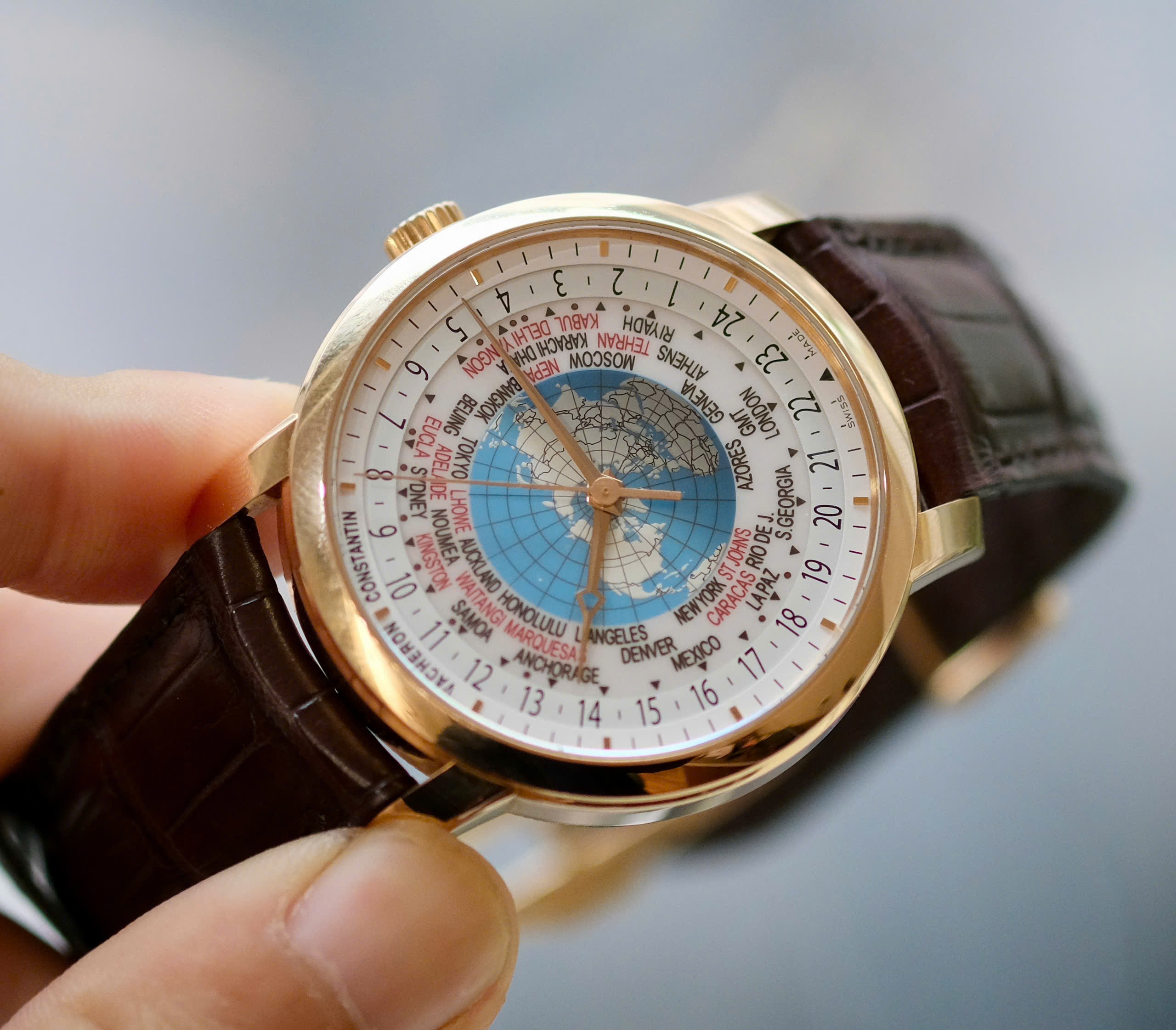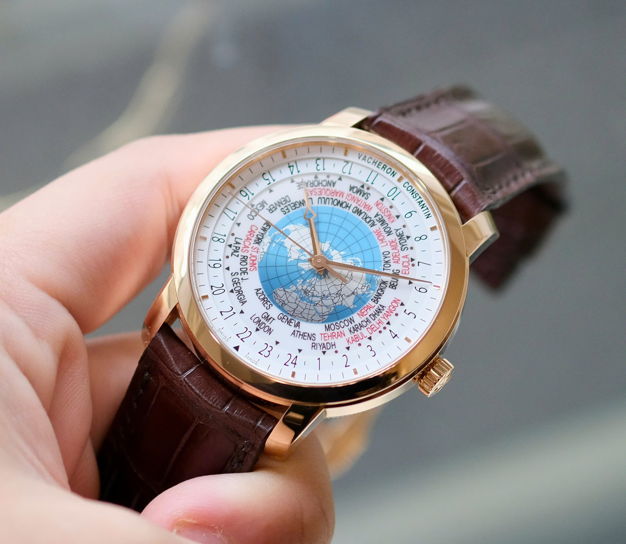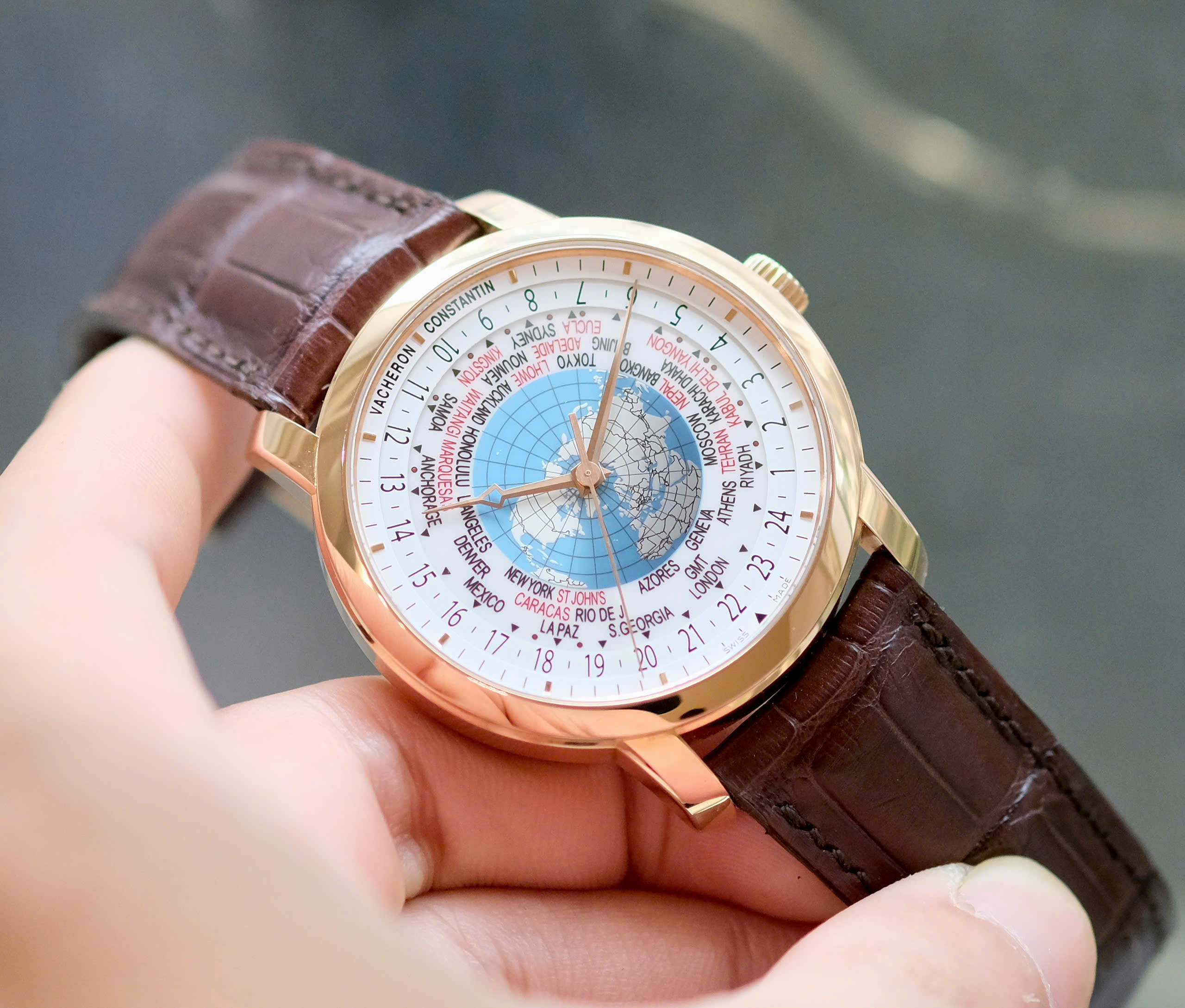 Múi giờ lẻ: Khác với đa số đồng hồ World Time thông thường chỉ hiển thị 24 múi giờ chẵn, Vacheron Constantin có thể hiển thị cả những múi giờ lệch 15 hoặc 30 phút (như ở Ấn Độ, Venezuela hay một số vùng của Úc).